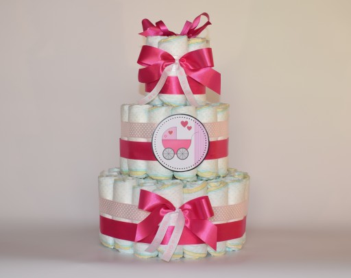 Триярусний красивий торт, зроблений своїми руками з оригінальних підгузників Pampers - це незвичайний і практичний подарунок, якому порадіє кожен малюк і кожен батько.
