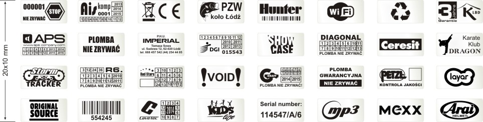 PLOMBY GWARANCYJNE, SYSTEMY ZABEZPIECZEŃ, STICKERY, ETYKIETY