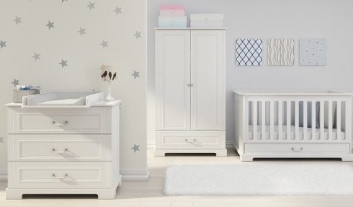 Вся меблі пофарбована в ніжний білий колір (слонова кістка), сертифікована фарба, безпечна для дітей.
