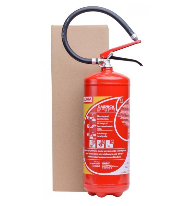Gaśnica Proszkowa 6kg GP-6x ABC typ PDE6 GLORIA + Znak "GAŚNICA" 10x10cm