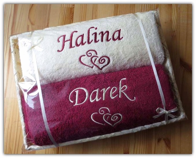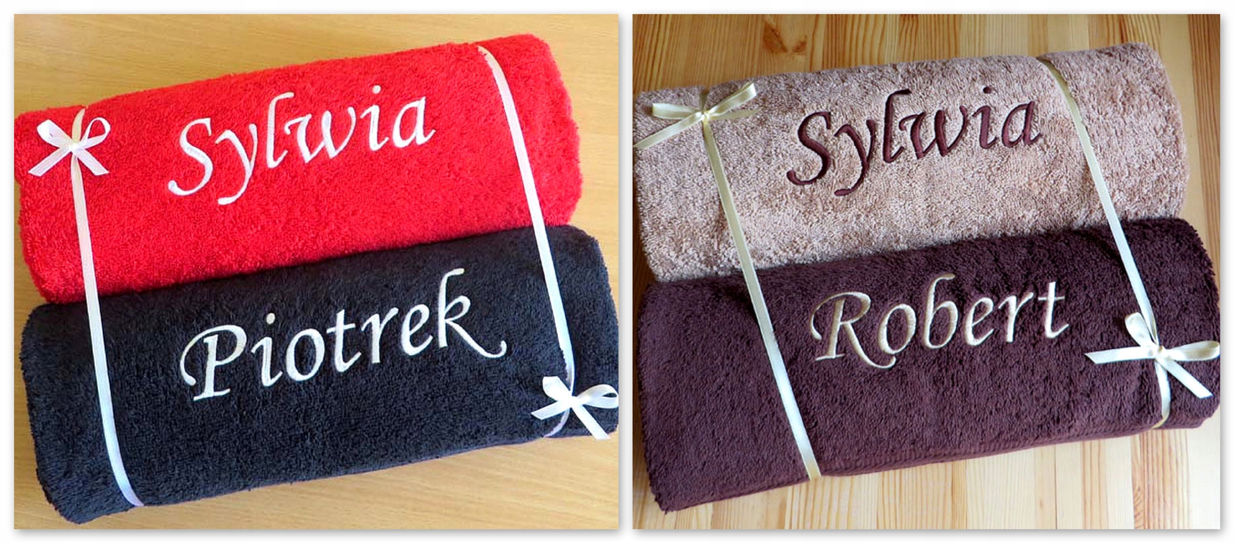 Ta aukcja i cena dotyczą kompletu 2 szt. dużych ręczników w rozmiarze 70x140 cm z Twoim indywidualnym haftem w postaci: