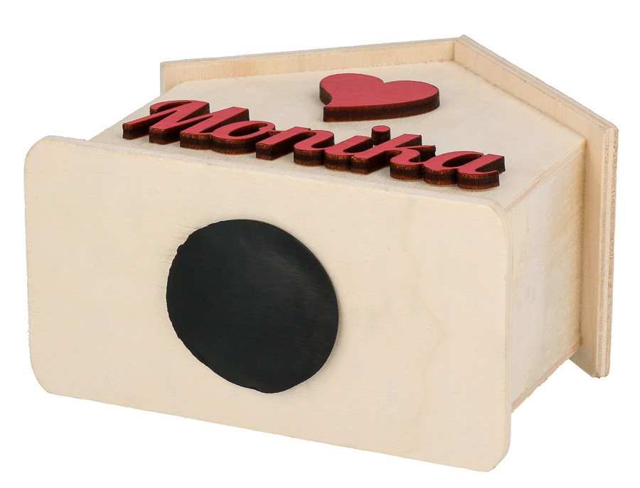 Drewniana SKARBONKA z unikalnym kolorowym przestrzenym IMIENIEM.