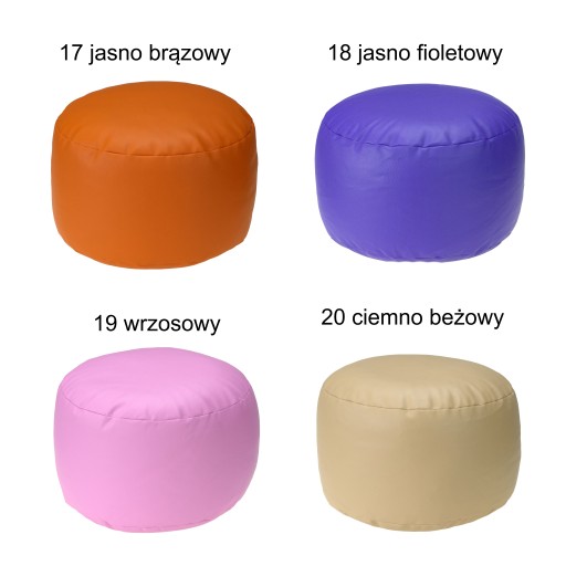 Предмет аукціону - круглий пуф-ролик, в 20 кольорових варіантах на вибір. Розміри пуфа 40 см в діаметрі і 25 см у висоту. Кольорову версію можна вибрати під час покупки, вибравши кольорові версії з таблиці кольорів або палітри кольорів, доступних на аукціоні. Інструкції щодо вибору кольорів описані в тексті нижче. Пуф - це безкаркасний предмет меблів, тому його розміри можуть змінюватися в залежності від ваги користувача, розташування пуфа або вибору наповнення. Пуф стандартно наповнюється сумішшю гнучких матеріалів для виробництва меблів, які забезпечують довговічність і комфорт використання. Ролик виготовлений з екошкіри доларо, яка сертифікована Національним інститутом гігієни.