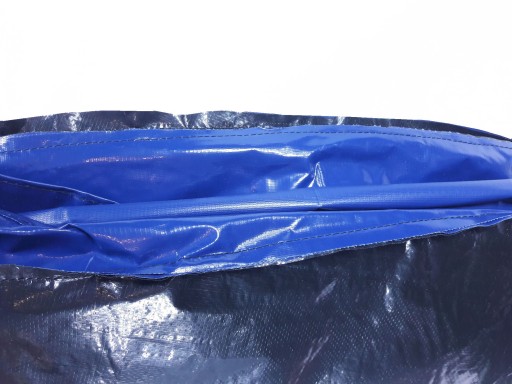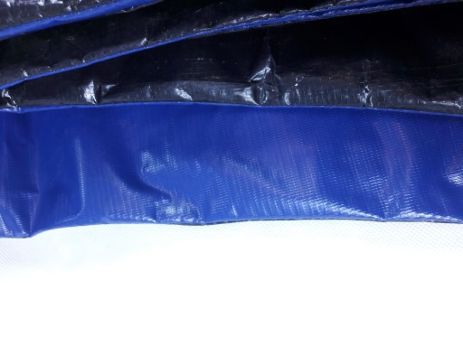 Нова глава у виробництві чохлів для батутів: Полівінілхлорид - термопластичні властивості, висока механічна міцність і стійкість до багатьох розчинників. Чохли з цього матеріалу можна прати хімічними засобами. Не зашкодять їм і їдкі речовини, пташиний послід, які послаблюють поліетиленові кришки. Чохол стійкий до несприятливих погодних умов і сонячного випромінювання і не тріскається. Виготовлений естетично, якісно закриває пружини та інші металеві елементи, перекриває килимок приблизно на 5 см. При такій ширині ніжка дитини не потрапить між пружинами. Він м'який і добре сидить на рамі батута. Ширина: 26 см і додаткова 10 см, яка, опускаючись, закриває труби каркаса зовні. Товщина вшитого в чохол поролону: 12 мм - він жорсткий, не летить. Кріпиться до рами гумовою обв'язкою - нещільно.