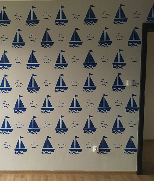Szablon do malowania “Ships & Seagulls” daje niesamowity efekt spersonalizowanej kolorystycznie tapety. Tworzy z pokoju dziecka niezapomniane miejsce zabawy i marzeń. Wybierzcie się na wspólną przygodę i podbijcie wszystkie wyspy Oceanu Marzeń.