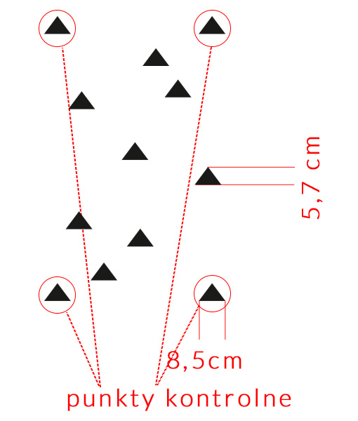 - trójkąt 8,5 x 5,7 cm