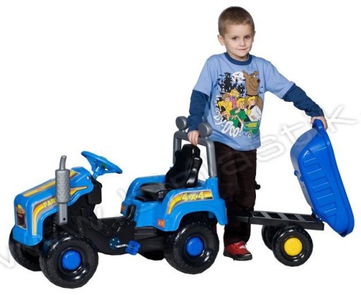 У ТРАКТОРА Є ПЕДАЛЬНИЙ ПРИВІД(З ЛАНЦЮГОВИМ МЕХАНІЗМОМ) ТА РУЛЬМО, З ЯКИМ ДИТИНА КЕРУЄ ВЕСЬ КОМПЛЕКТ!!!!