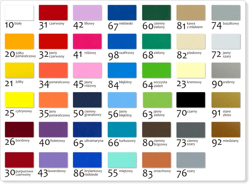 Mogą Państwo zmienić kolory poszczególnych arkuszy na inne, pełny kolornik znajduje się na końcu aukcji. Informację o zmianie prosimy zawrzeć w formularzu dostawy, podczas składania zamówienia.