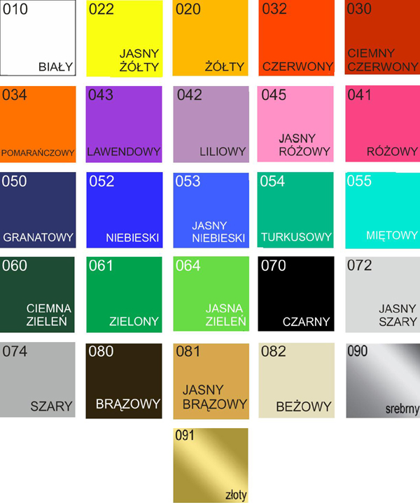 Oto dostępne kolory, po zakupie proszę o informacje w którym z nich mają być wykonane naklejki.