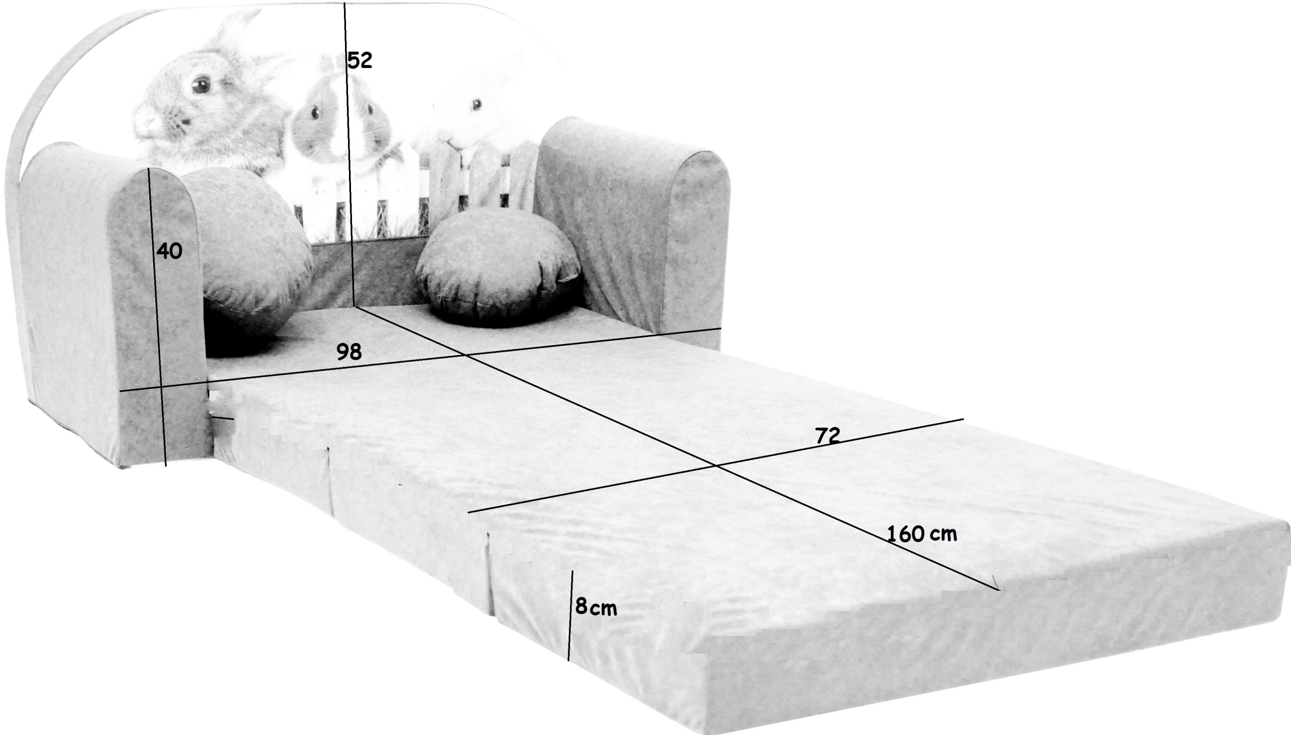 Kanapa jest lekka, dziecko w zależności od swoich potrzeb może ją samodzielnie przestawiać, przesuwać, składać i rozkładać.