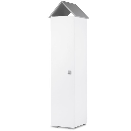 Красива дитяча шафа з колекції PABIS ідеально доповнить дитячу кімнату. Сучасний і простий стиль білого кольору дозволить вам легко вписати гардероб в решту кімнати. Крім того, завдяки кольоровому даху Pabis набуває казкового вигляду, що робить його елементом повсякденної гри. Місткі стелажі дозволять розмістити дитячі іграшки, одяг та інші предмети, пов'язані з дітьми. Гардеробна шафа Pabis - гарне рішення в дитячій кімнаті, яке буде підтримувати порядок навколо маленьких користувачів і ідеально поєднуватися з іншими елементами дитячої колекції PABIS.