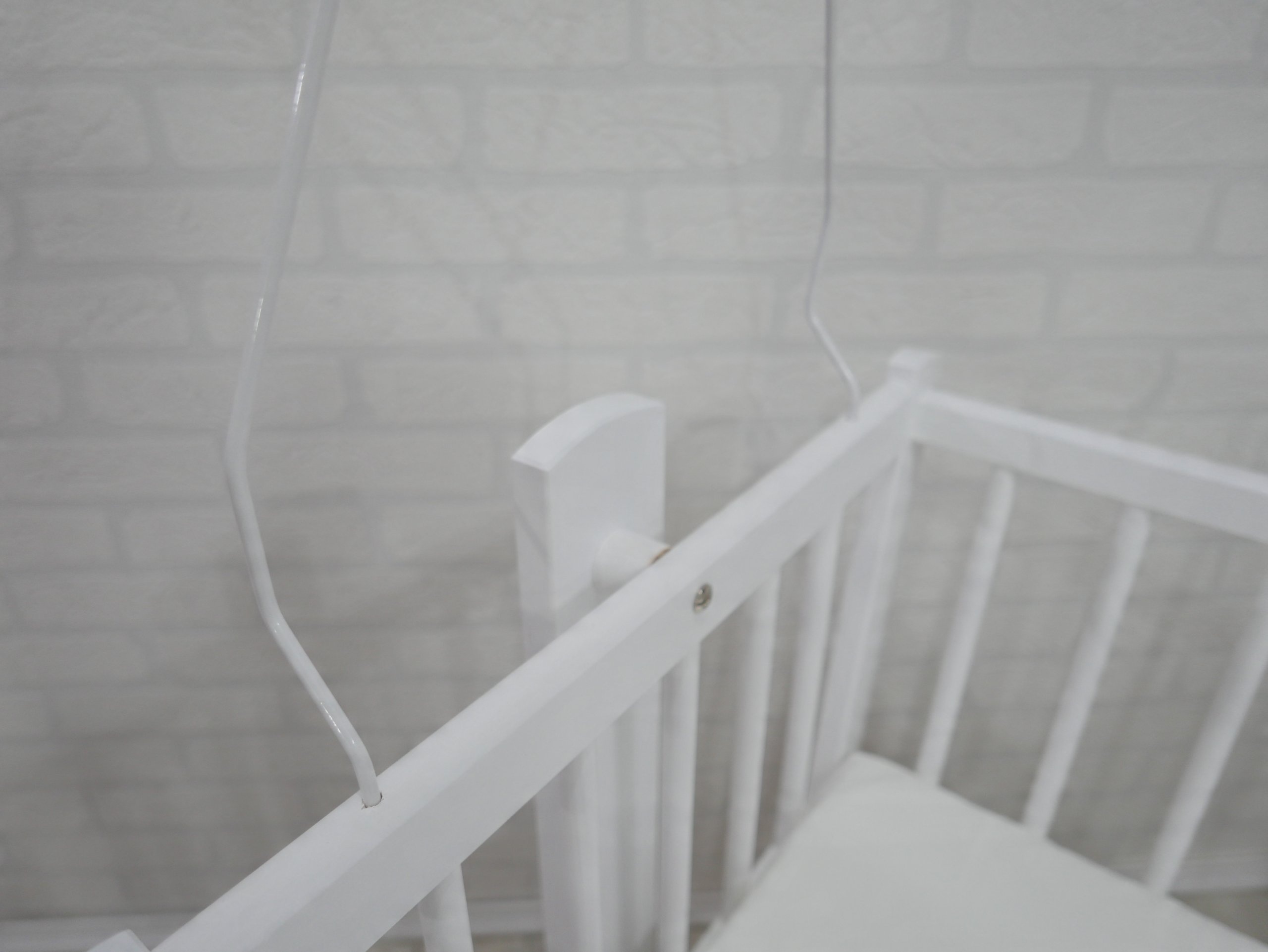 Stelaż wykonany z wysokiej jakości materiałów mocowany w otwory znajdujące się w kołysce, wysokość stelaża od obręczy do łóżeczka 68 cm.