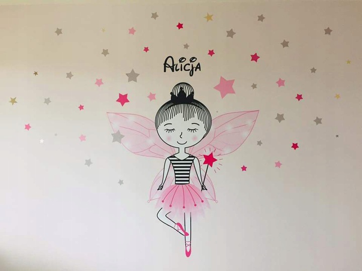 Wysokość wróżki 80 cm.Gratisowo do zamówionej naklejki dokładam napis z imieniem dziecka,proszę pamiętać by je podać.