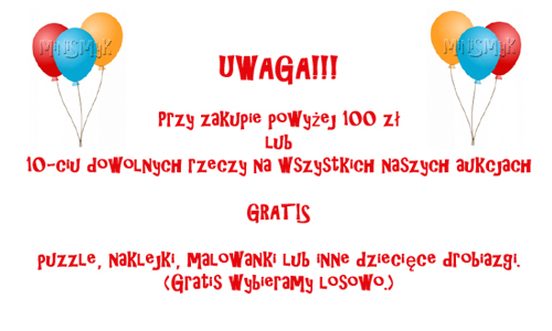 Авторські права на тексти, фотографії та графічні мотиви, що містяться на моєму сайті "Про мене" та всіх аукціонах користувачів - miniSmyk - належать МІНІСМИК. Використання та зміна дизайну або його частин без моєї згоди є незаконним і може стати підставою для позовів про відшкодування збитків і кримінальної відповідальності. Усі порушення авторського права та прав, що випливають із Закону про боротьбу з недобросовісною конкуренцією від 16 квітня 1993 року. (Вісник законів № 47, пункт 221, зі змінами) буде негайно повідомлено юридичний відділ Allegro.pl.