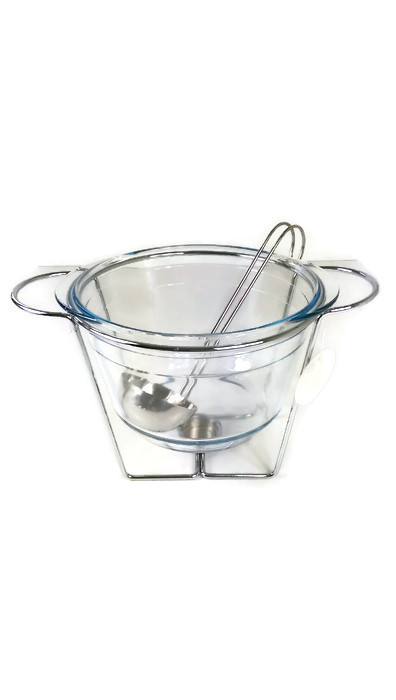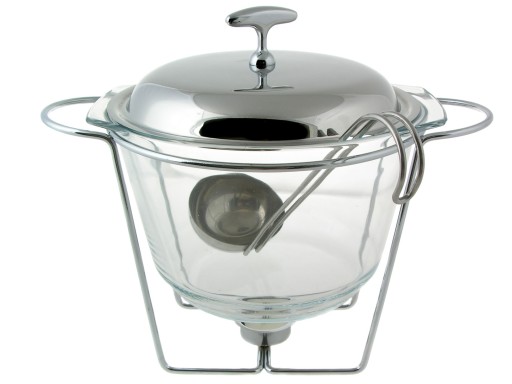 Naczynie z podgrzewaczem idealne sprawdza się do przygotowania i serwowania przeróżnych potraw.