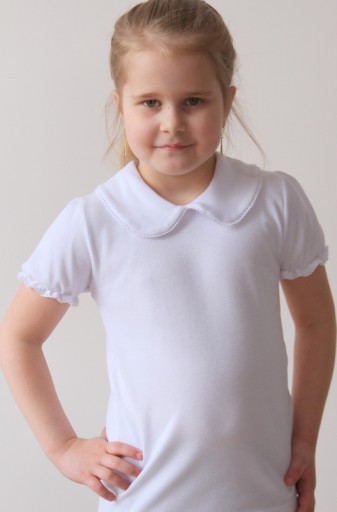 БІЛА БЛУЗКА З КОМІРНИКОМ КОРОТКИЙ РУКАВ РОЗМ 134