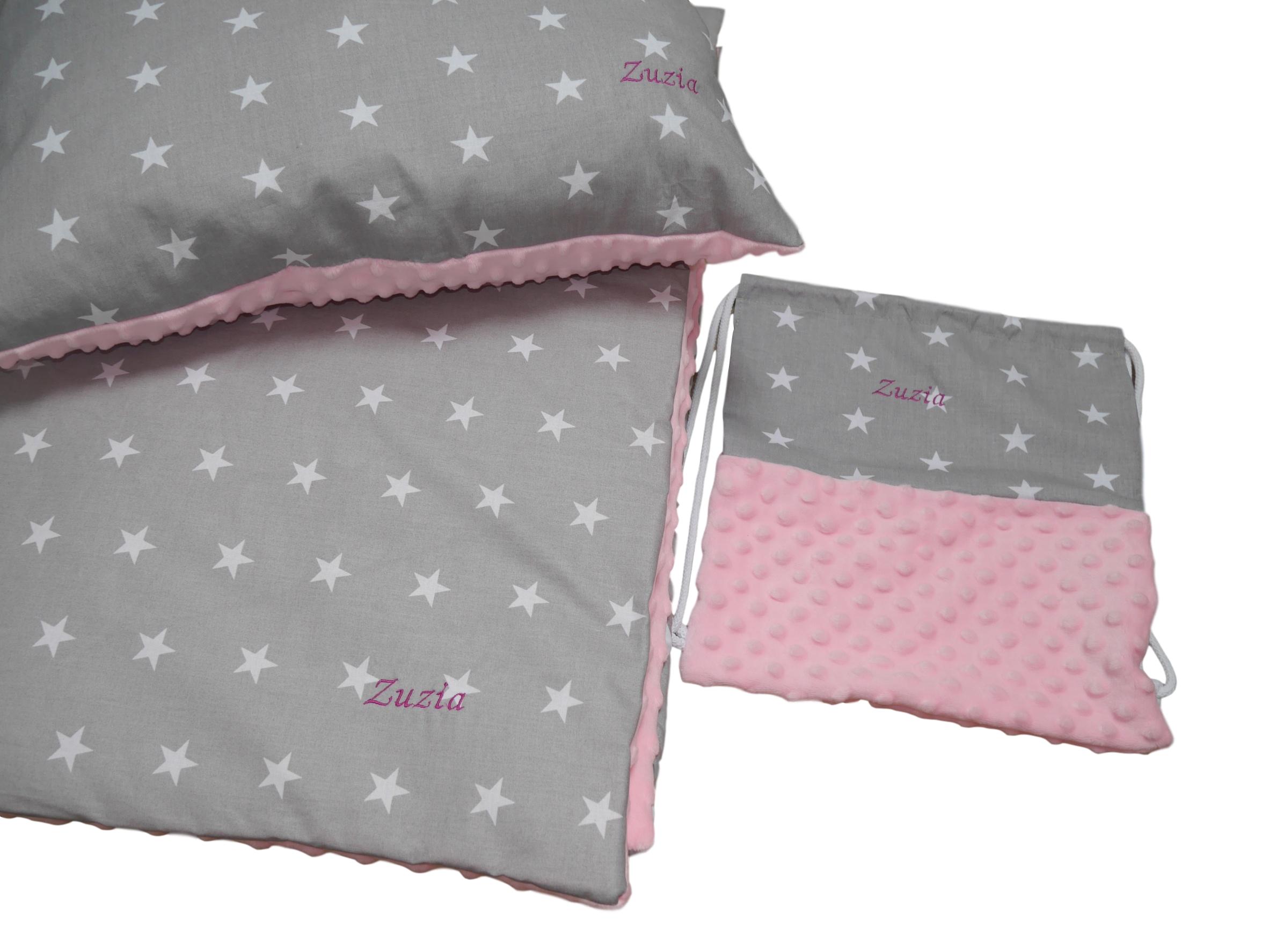 Na życzenie haftujemy imię dziecka na woreczku , poduszce i kocyku . Wystarczy , że w wiadomości do sprzedającego napiszecie Państwo jakie imię i nazwisko  mamy wykonać .