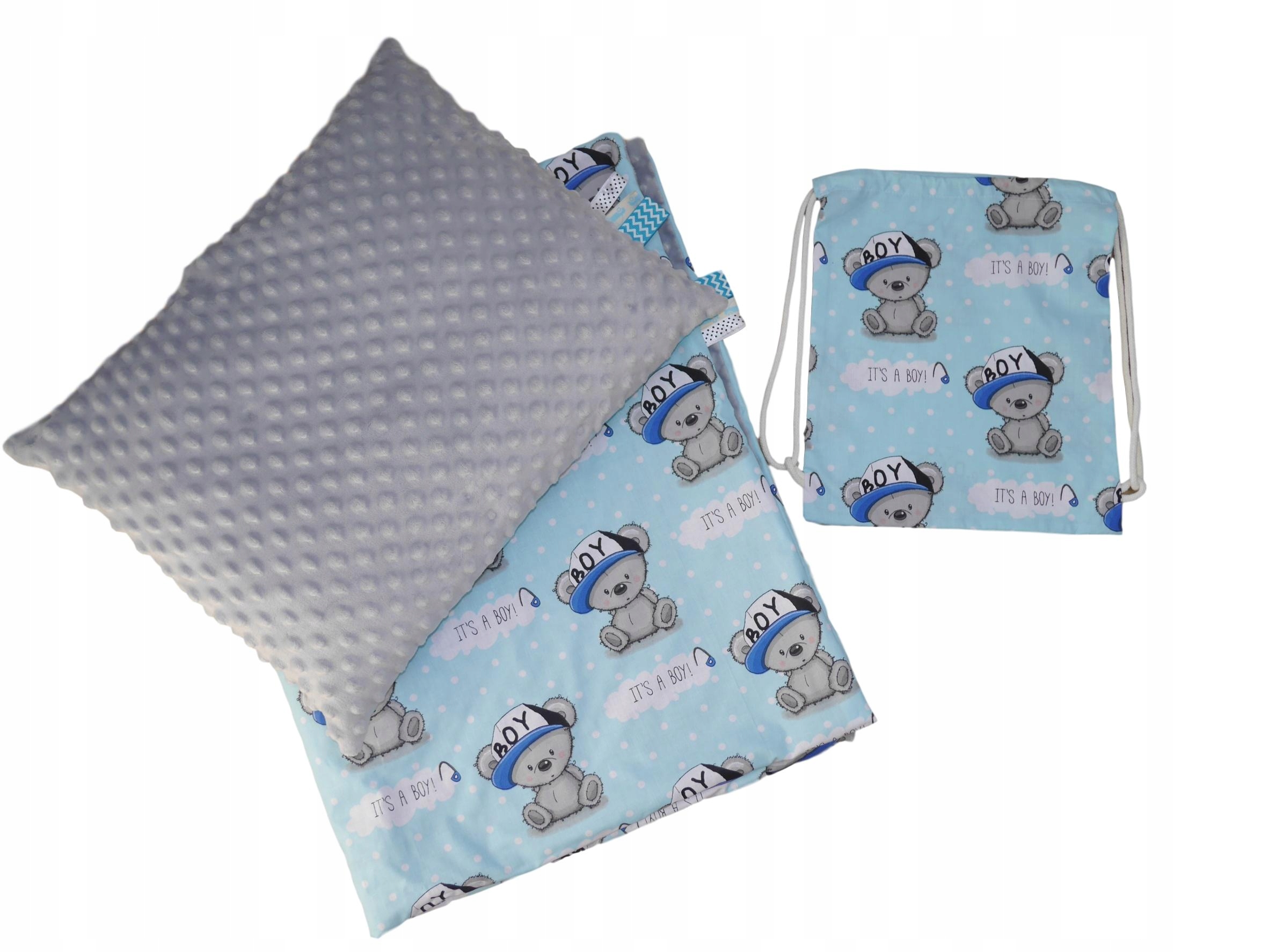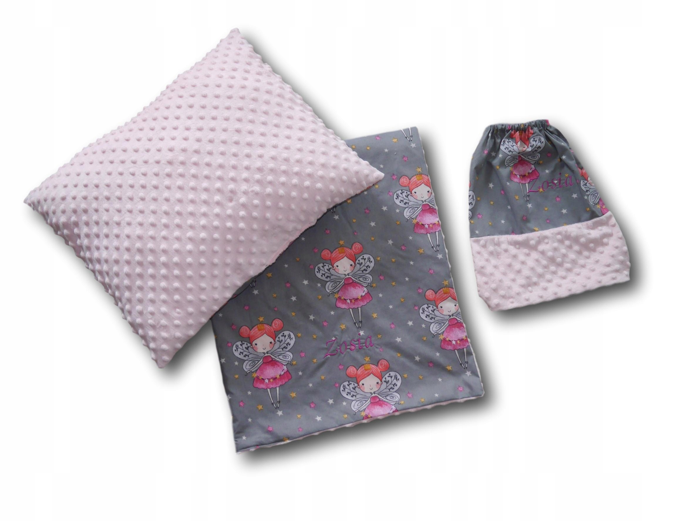 Kocyk i poduszka dla przedszkolaka , gratis otrzymują Państwo woreczek na kapcie.