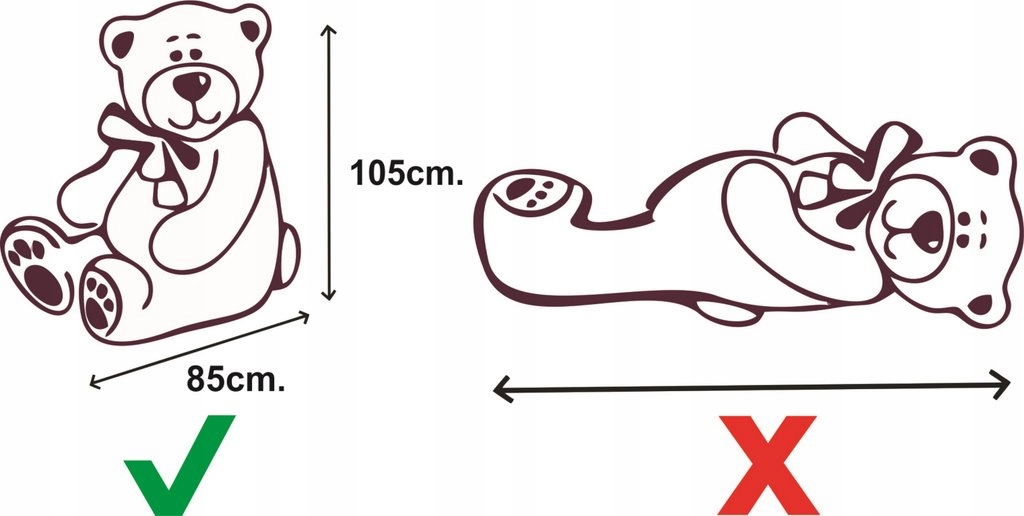 Poniżej podajemy dokładnie zmierzone wymiary naszych misiów !