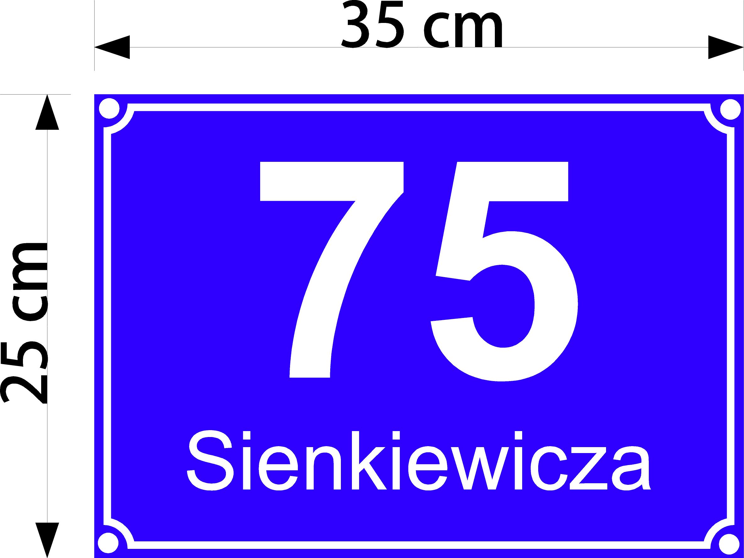 Przedmiotem aukcji jest pozioma tabliczka adresowa z numerem posesji i nazwą ulicy o wym. 60 cm x 15 cm Tabliczka wykonana jest na bardzo solidnym materiale podkładowym tj. blacha ocynkowana, gr. 1 mm.
