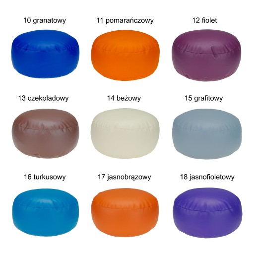 Предмет аукціону - круглий пуф-ролик, в 20 кольорових варіантах на вибір. Розміри пуфа 40 см в діаметрі і 18 см у висоту. При покупці ви можете вибрати будь-яке кольорове виконання, вибираючи кольорові варіанти із зразка або кольорової палітри, наявних на аукціоні. Інструкції щодо вибору кольорів описані в тексті нижче. Пуф - це безкаркасний предмет меблів, тому його розміри можуть змінюватися в залежності від ваги користувача, розташування пуфа або вибору наповнення. Пуф стандартно наповнюється сумішшю гнучких матеріалів для виробництва меблів, які забезпечують довговічність і комфорт використання. Валик виготовлений з екошкіри Dollaro, яка має сертифікат PZH.