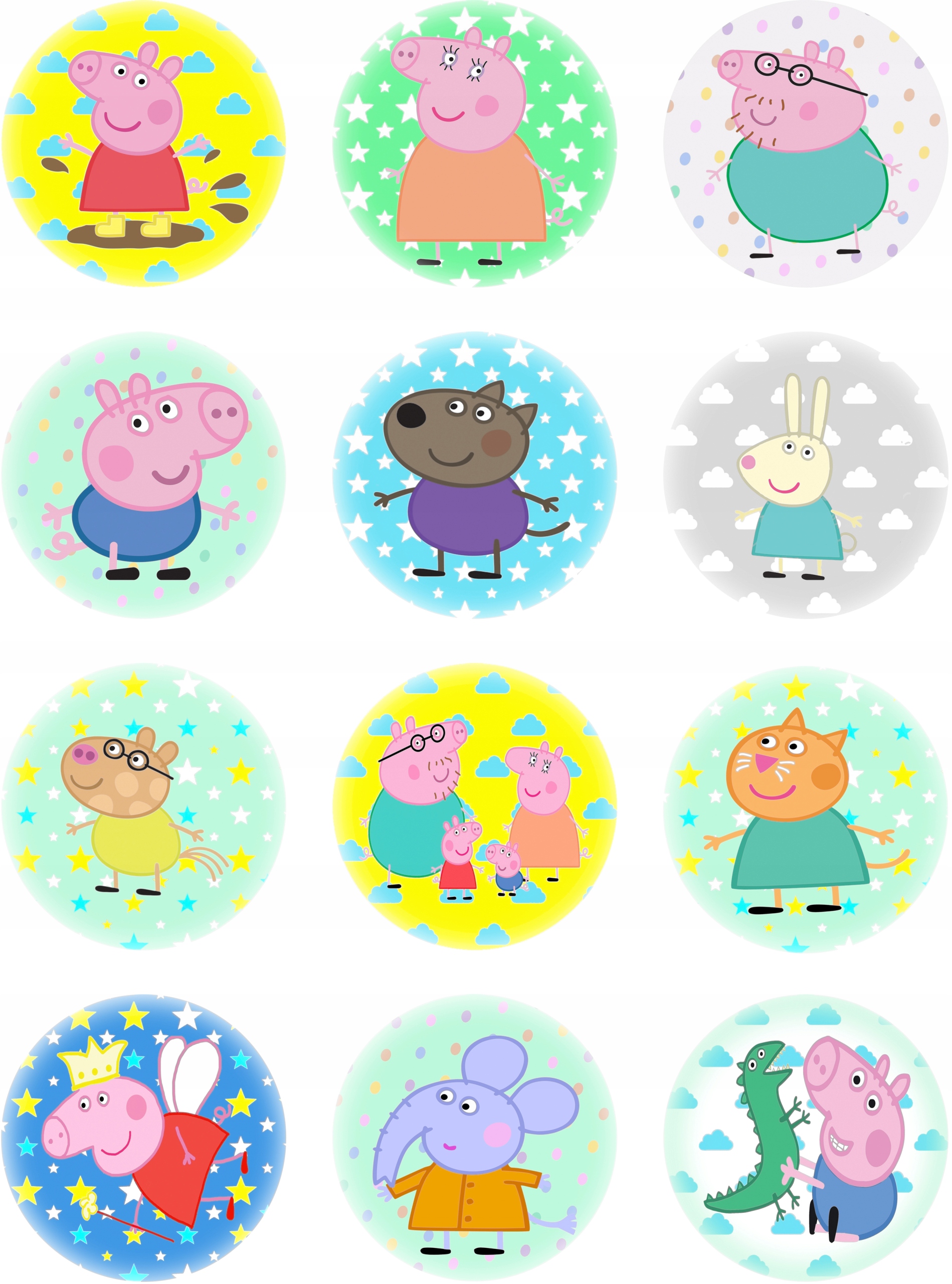 Przedmiotem aukcji jest zestaw 12 okrągłych magnesów z postaciami, z bajek dla dzieci.