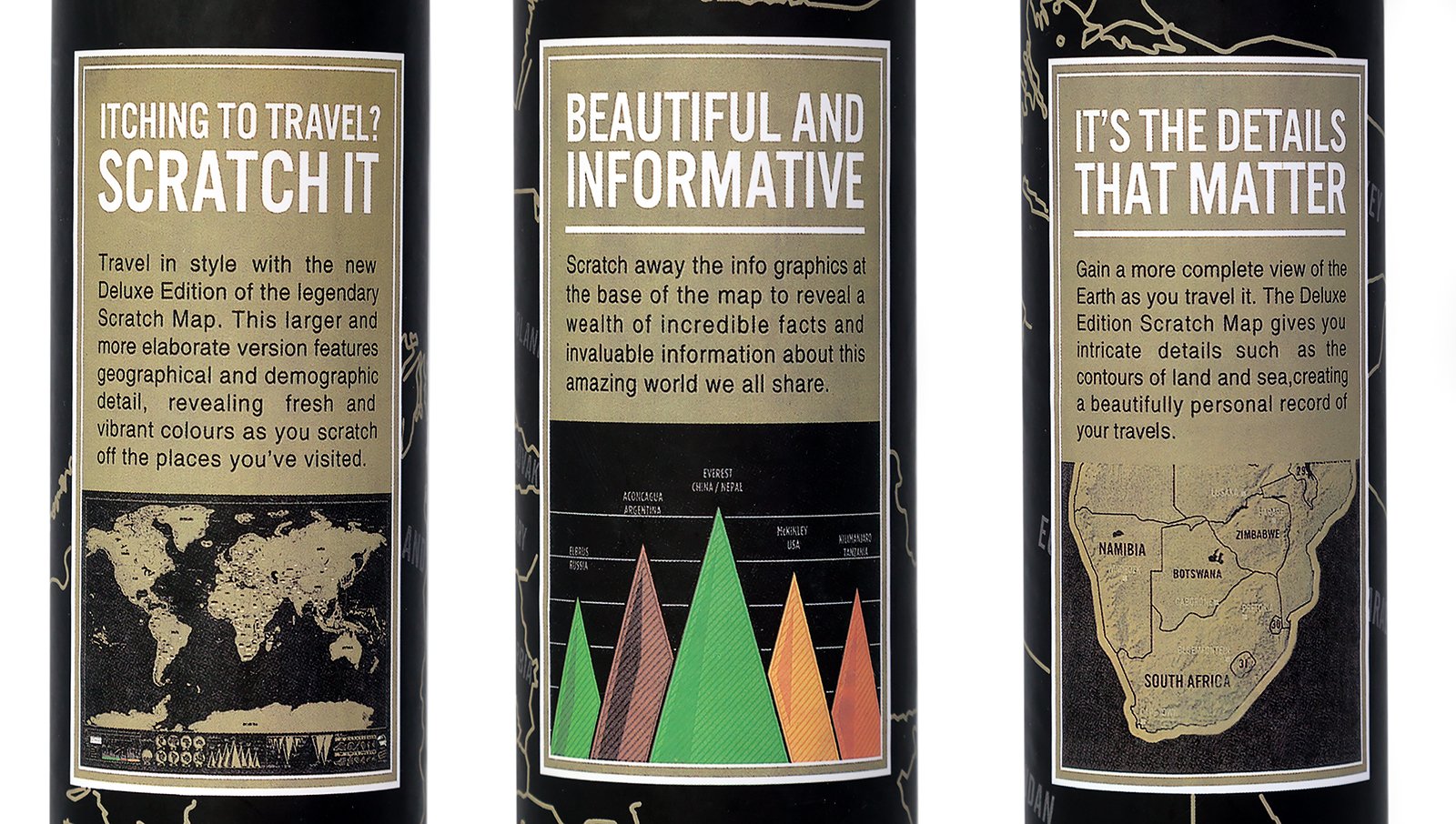 Zestaw zawiera mapę zdrapkę oraz twardą tubę.