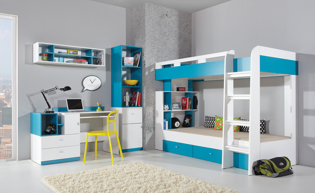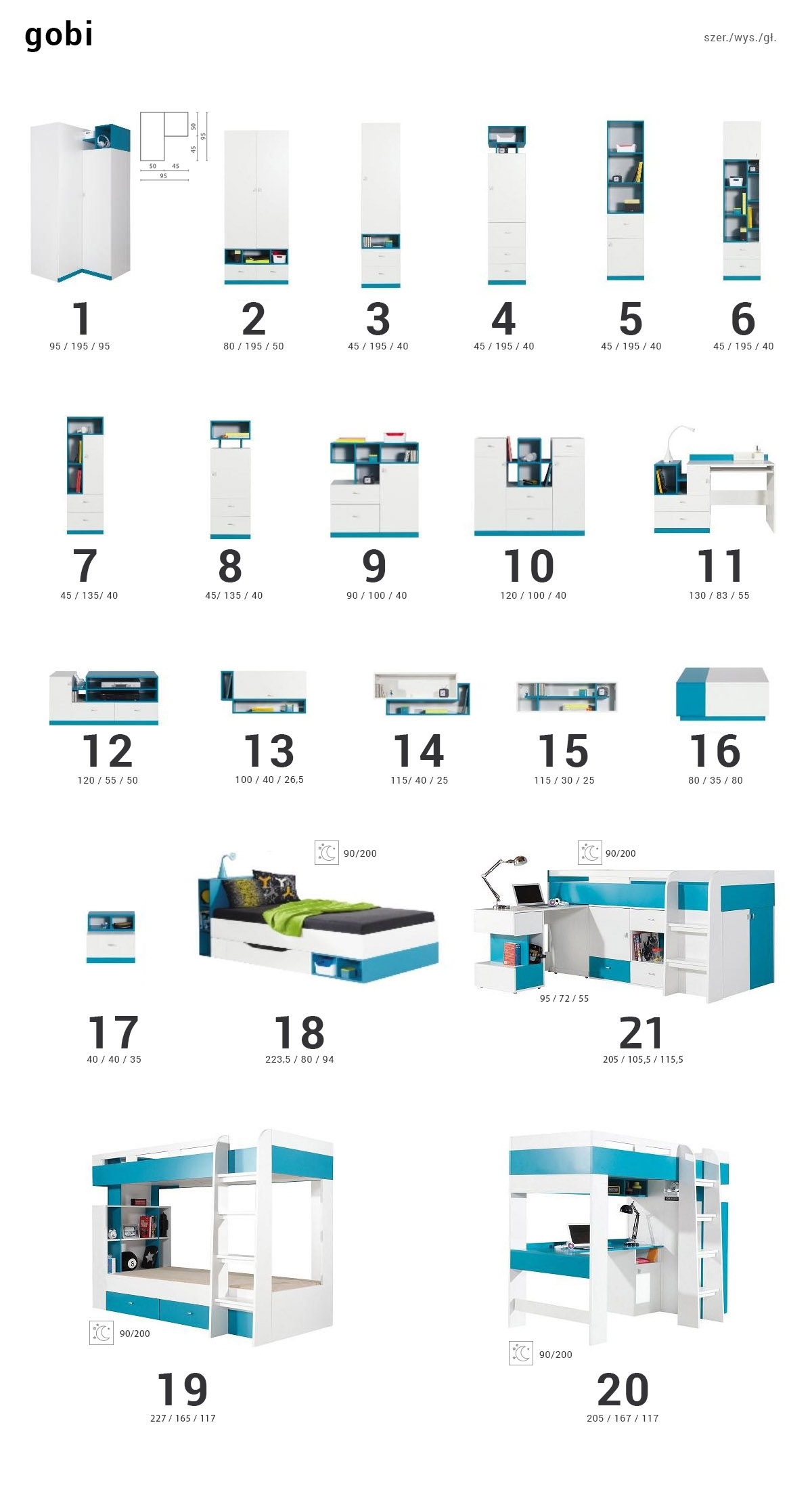 Meble GOBI to nowoczesny system młodzieżowy w odważnych kolorach. Proste bryły w nowoczesnym designie, pomysłowe półki oraz funkcjonalne szafki świetnie sprawdzą się w pokoju nastolatka lub dorastającego dziecka. Wszystkie elementy można kupować pojedynczo i tworzyć własne, niepowtarzalne ustawienia dzięki czemu, w pełni można wykorzystać wszystkie atuty zarówno mebli jak i urządzanego pokoju.