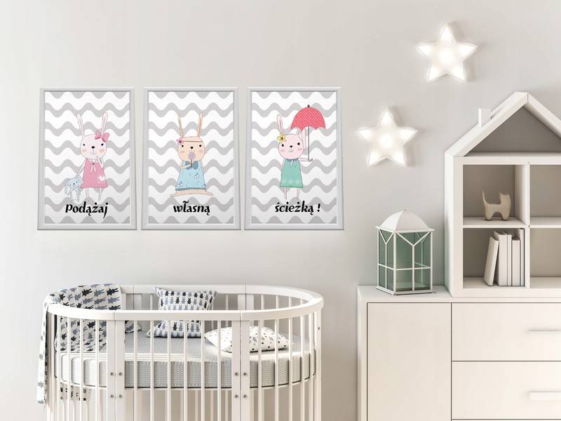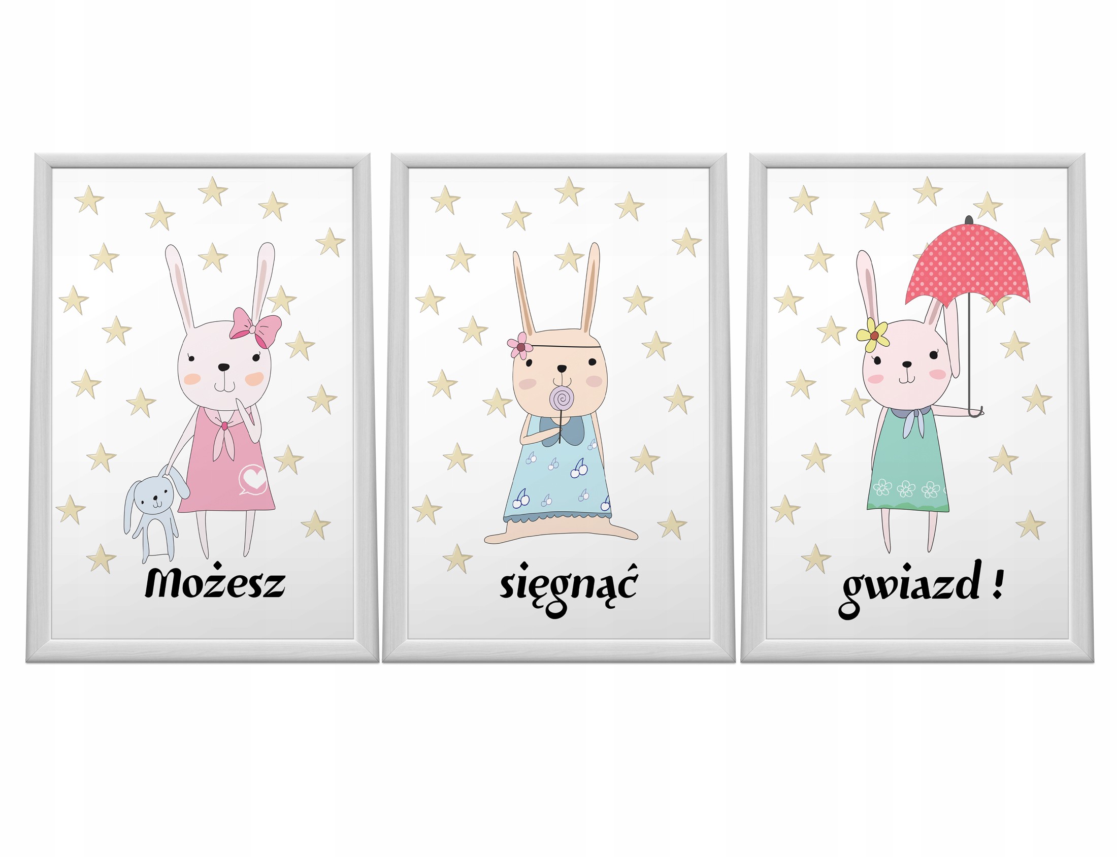***** ZESTAW 3 SZT Motywacyjnych PLAKATÓW A4 z Króliczkami - W RAMKACH *****