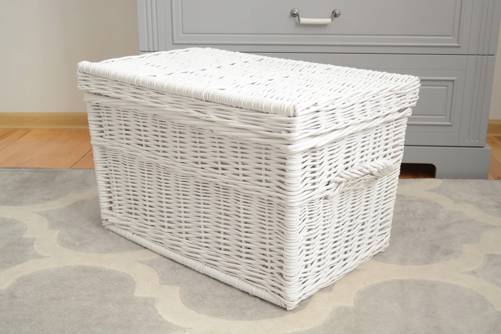 Сундук плетеный, цвет-БЕЛЫЙ с плетеной 60 см корзина