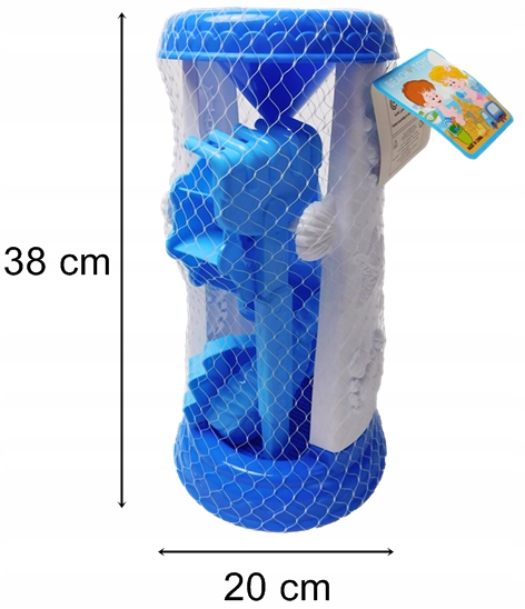 - U góry zabawki znajduje się lejek, w który należy wsypywać piasek.
