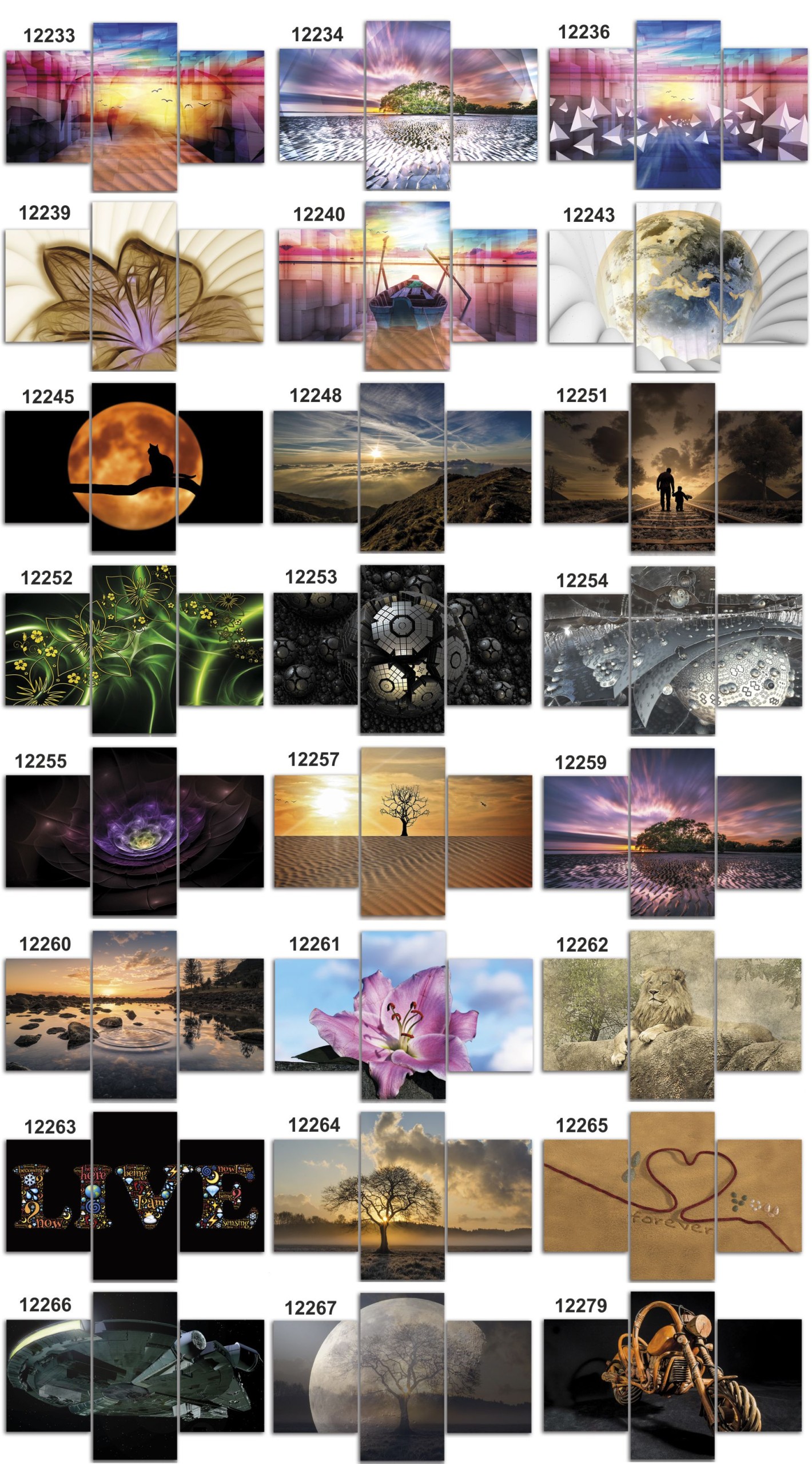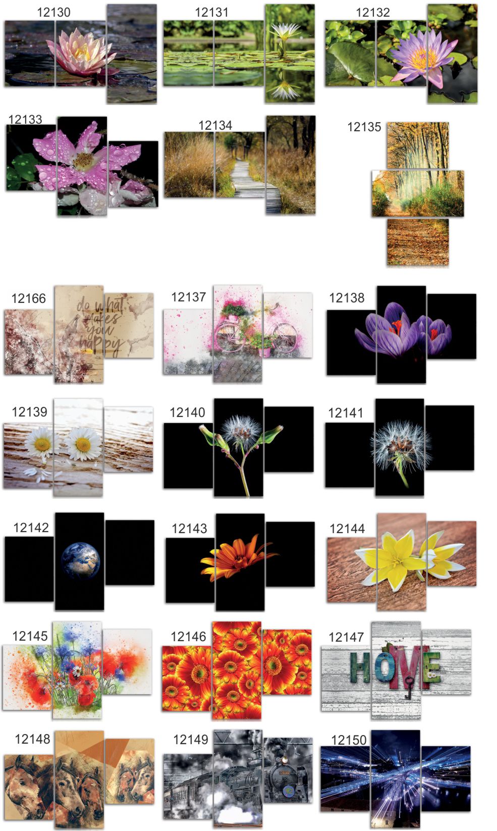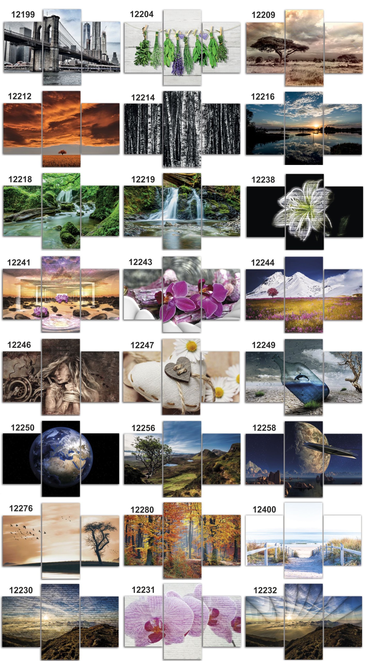 Przedmiotem aukcji jest wysokiej jakości 3 częściowy obraz drukowany na płótnie canvas z zadrukowanymi bokami. Cena 1szt. dotyczy obrazu o formacie całkowitym 120 cm x 180 cm, który składa się z elementów: 60x80,60x120, 60x80 cm