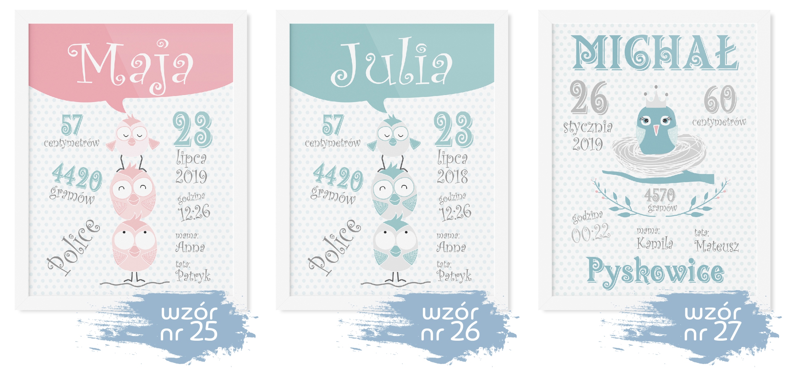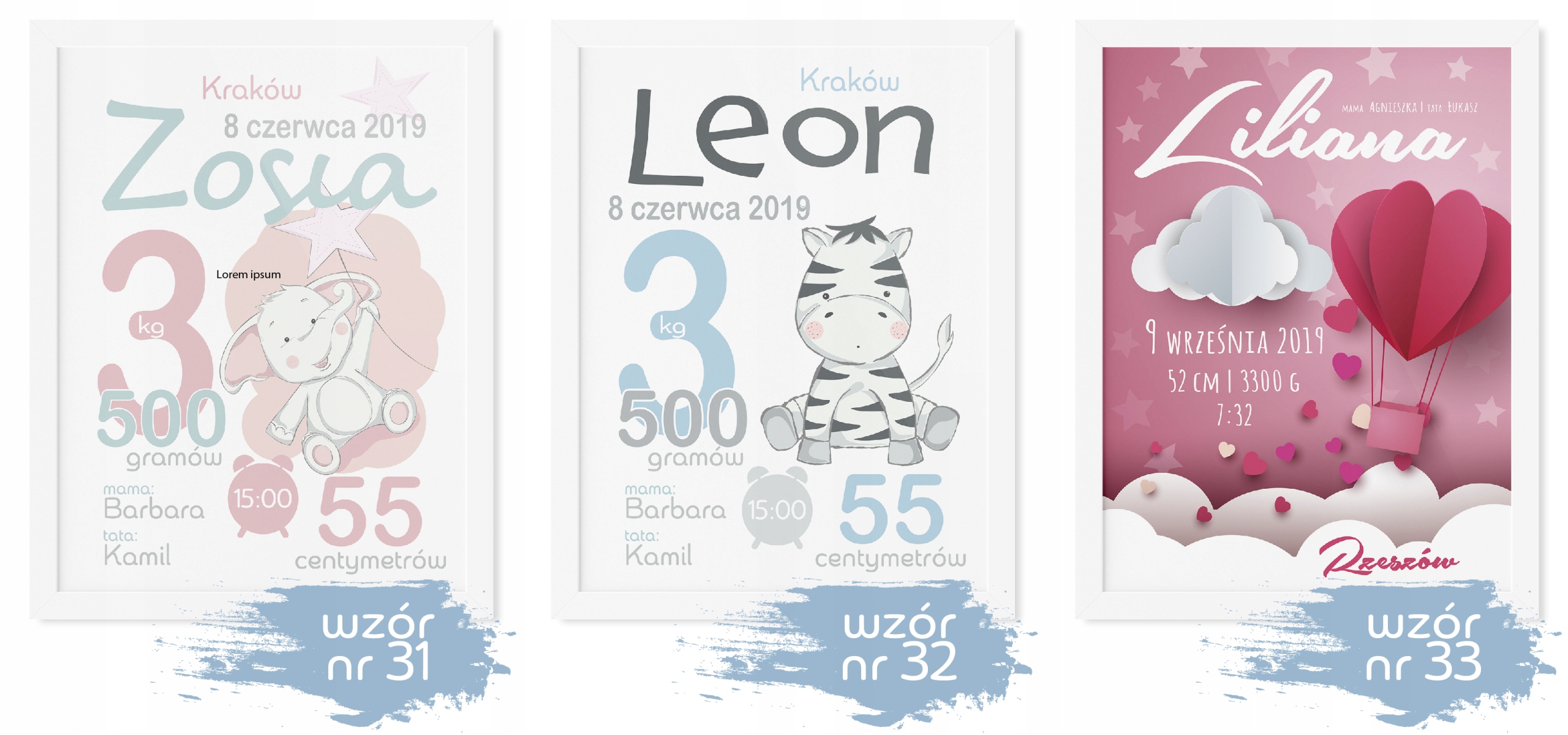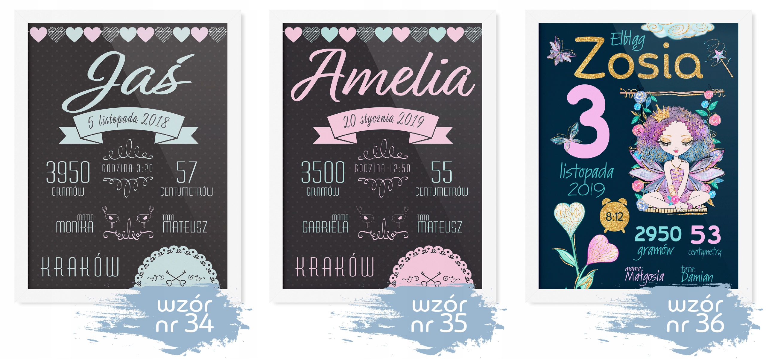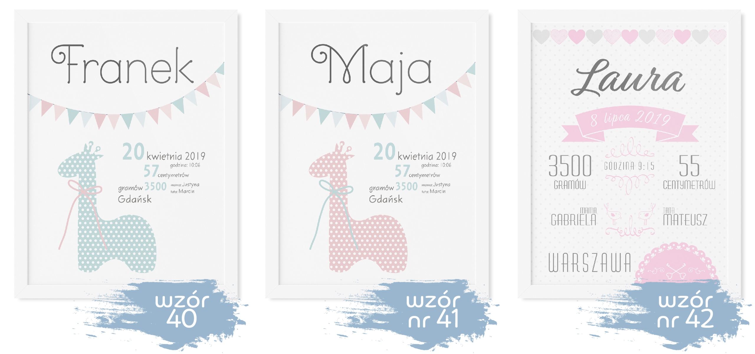 Po zakupie prosimy o wybranie nr wzoru, kolor ramki (biały lub czarny) oraz podanie danych: