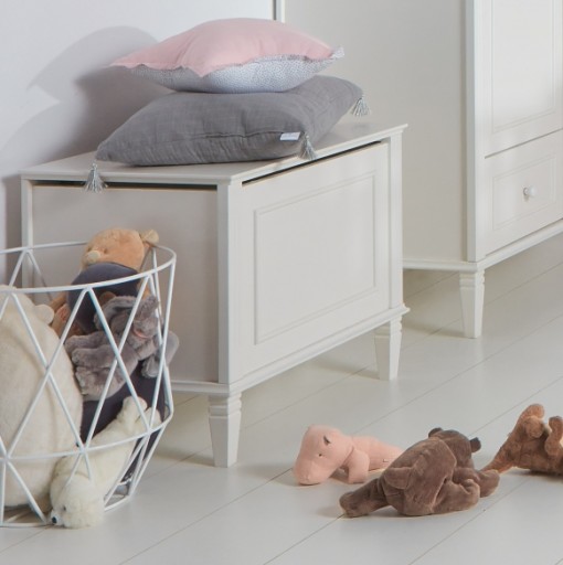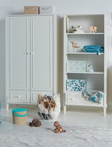 Колекція меблів Bianka в стилі арт-деко виправдає очікування найвибагливіших батьків. Стильні фрези та порцелянові ручки надають йому елегантності, а витонченість меблів підкреслюють красиві ніжки ручної роботи. Високі ніжки полегшують прибирання та прибирання іграшок, які впали під меблі. На меблевих фасадах декоративний дерев'яний підступ.