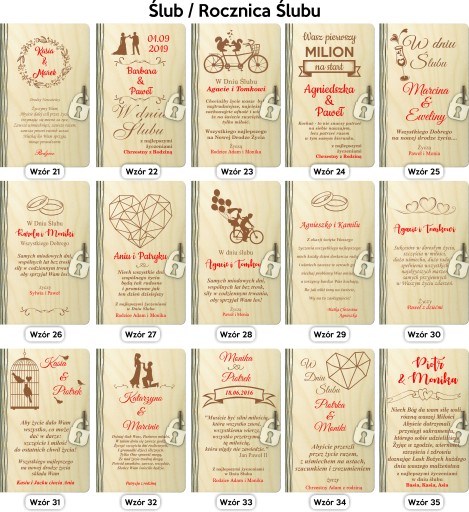 червоні елементи на візерунках представляють персоналізовані місця, ви отримуєте колір природного гравіювання на виробі. Ми можемо додати дату до кожного шаблону. При замовленні звертайте увагу на синтаксис тексту.