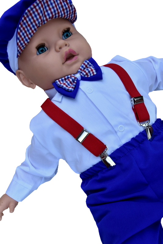 Elegancki, a zarazem z ciekawym elementem w postaci szelek do spodni w różnych kolorach do wyboru.
