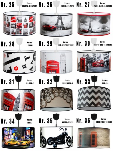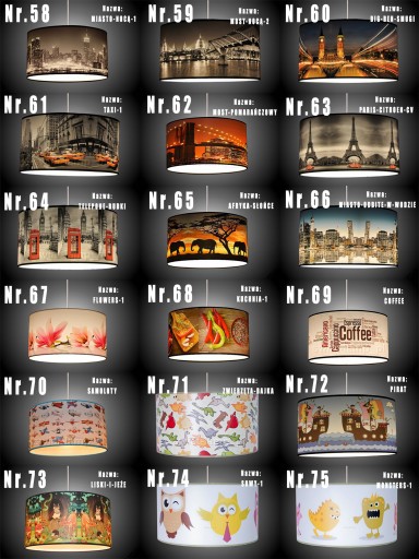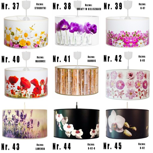 - широкий асортимент кольорів абажурів на вибір із 105 візерунків