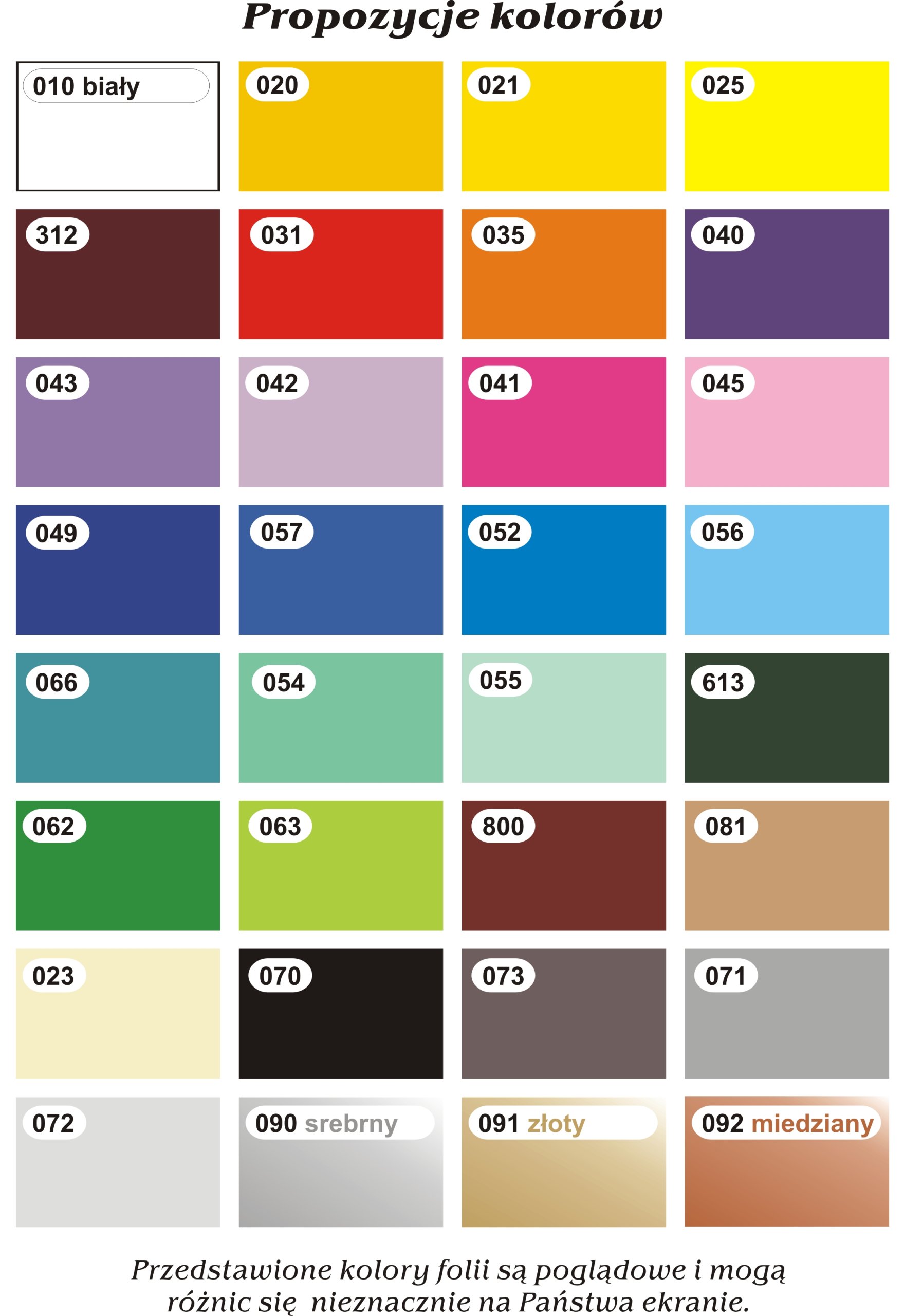 Przy składaniu zamówienia prosimy o podanie numeru wzoru koloru folii według palety znajdującej się na dole aukcji oraz rodzaju wykończenia mat lub połysk. Cały arkusz wycinamy w jednym kolorze.