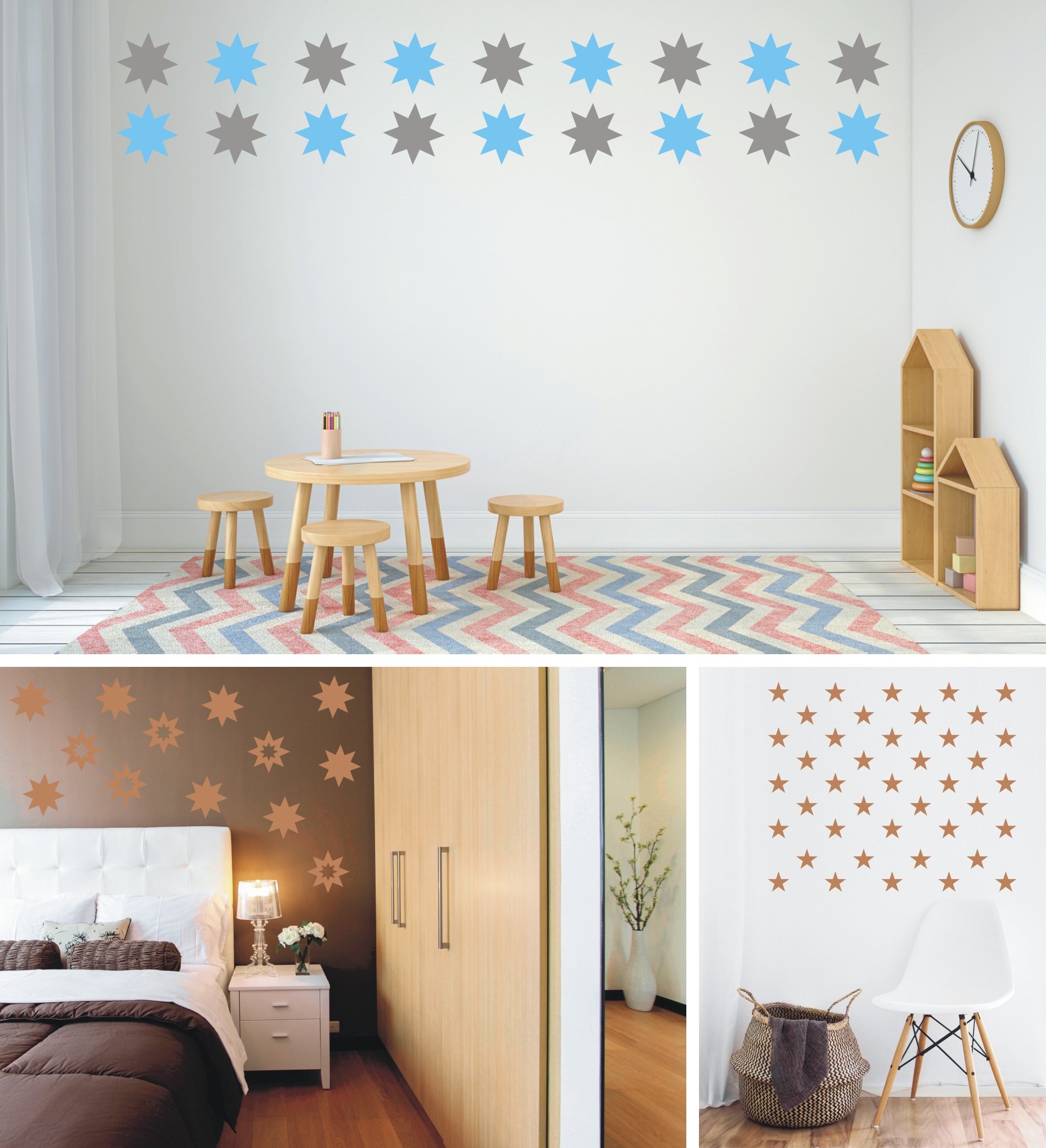 Naklejki można przykleić na ścianę lub na wszystkie gładkie, płaskie powierzchnie w pokoju jak np: meble, drzwi, okna, lustra, lodówki. Wykończenie naklejki może być matowe lub błyszczące.
