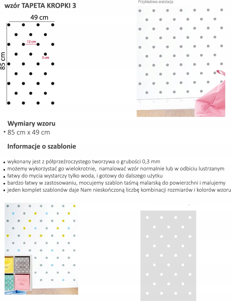 Шаблон малярный ОБОИ в ГОРОШЕК 3 узор повторяется