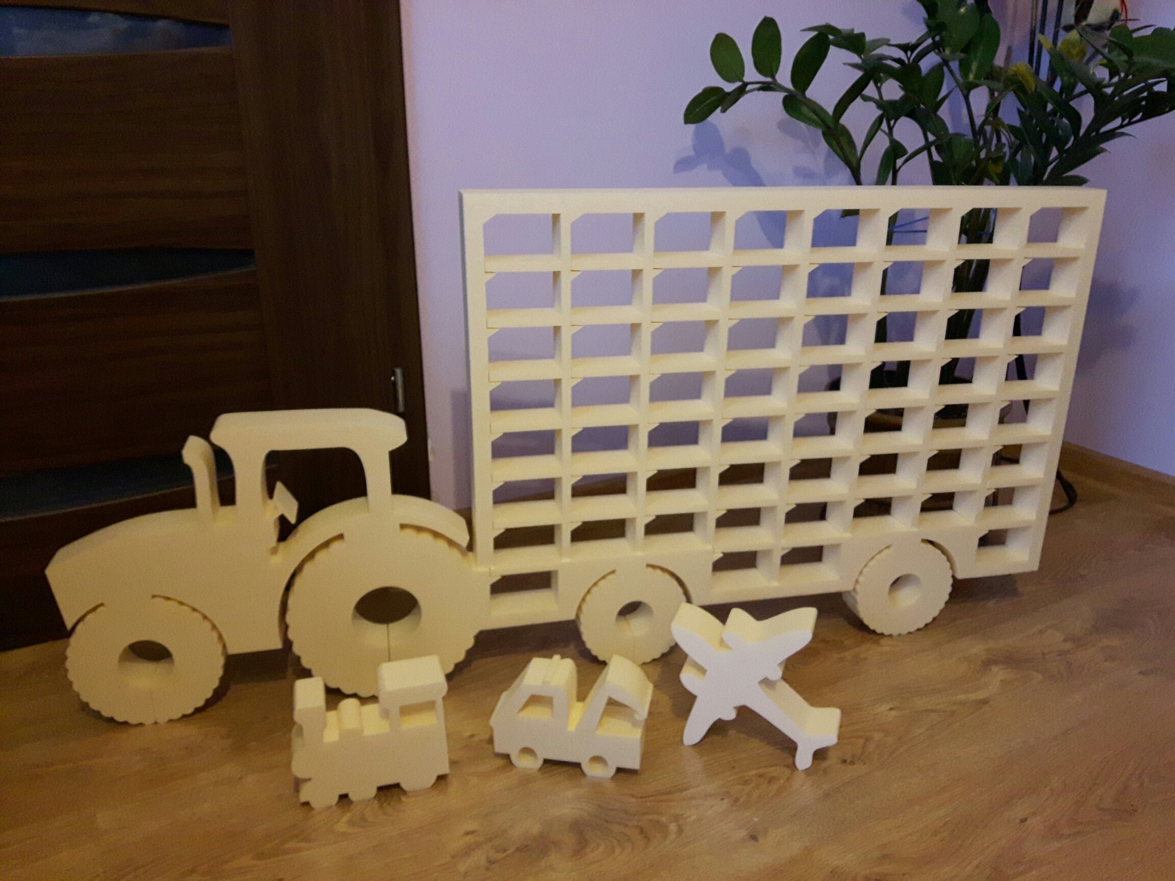 Ciężarówkę można pomalować farba w sprayu bądź pędzelkiem (tylko farba bez rozpuszczalnika). Auto najlepiej przykleić akrylem do ściany bądź tama dwustronnie klejącą tylko piankowa, wtedy auto jest stabilne i utrzyma ciężar samochodzików. Ciężarówka wykonana jest ze styroduru. Materiału twardszego od styropianu aczkolwiek nie jest to twardość sklejki.