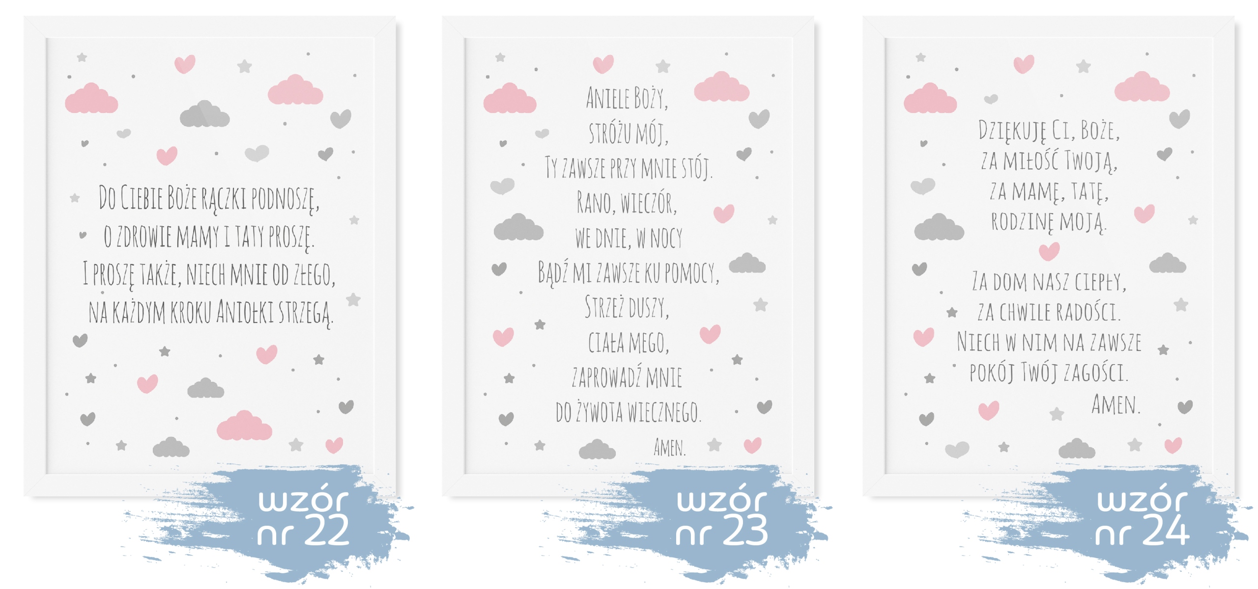 Plakat modlitwa jest fantastycznym prezentem na chrzest lub narodziny dziecka, jest również pięknym elementem dekoracyjnym pokoju dziecka