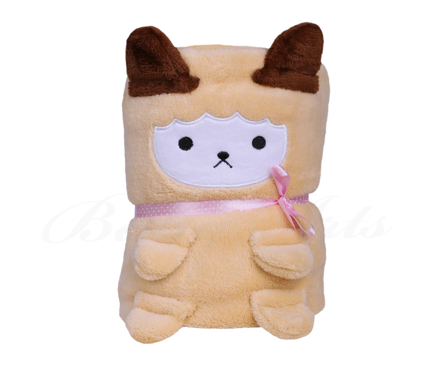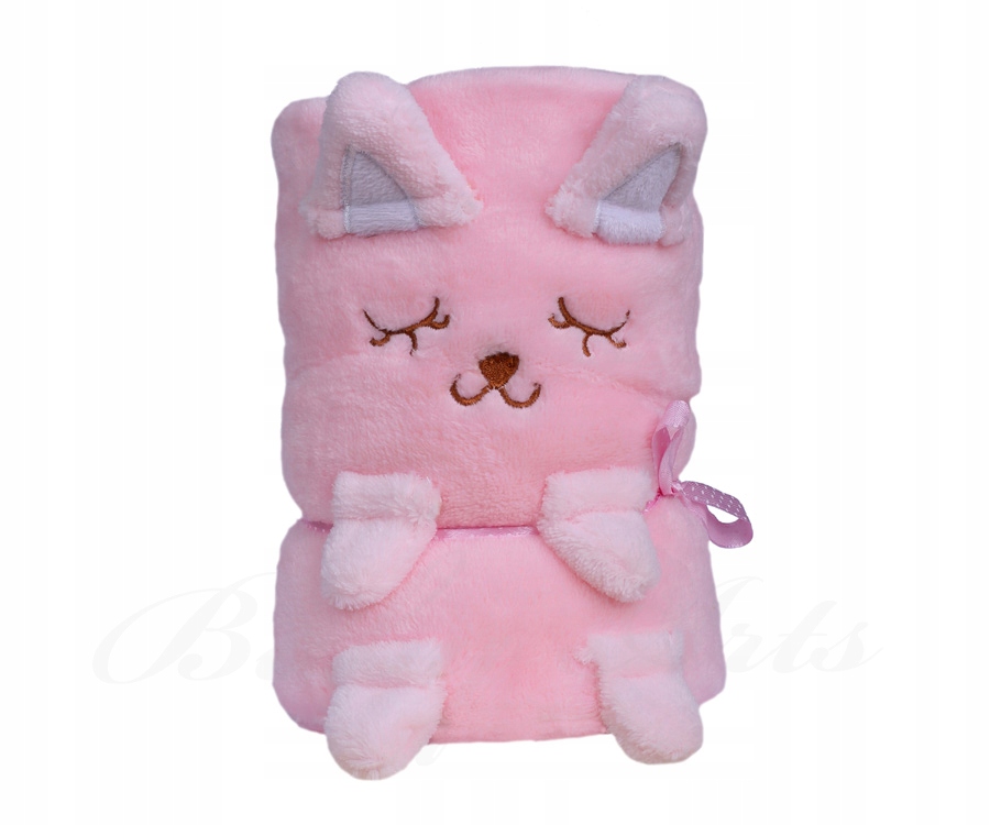 Kocyk idealnie nadaje się na prezent, gdyż jest piękny, słodki, milutki w dotyku, lekki i ciepły. Każdy kocyk posiada dwie tasiemki, dzięki którym można go zwinąć w rulonik tworząc maskotkę lub poduszeczkę. Oferujemy wiele atrakcyjnych kolorów do wyboru z przeuroczymi zwierzątkami