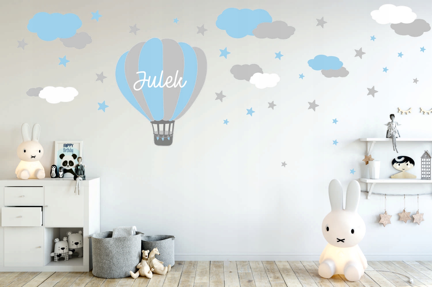 Zestaw naklejek balon i chmurki to wspaniały element wystroju do pokoju dziecięcego.