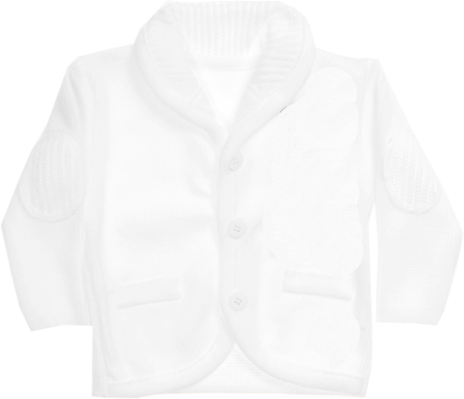 Sweterek chłopięcy biały z wywijanym kołnierzem.
