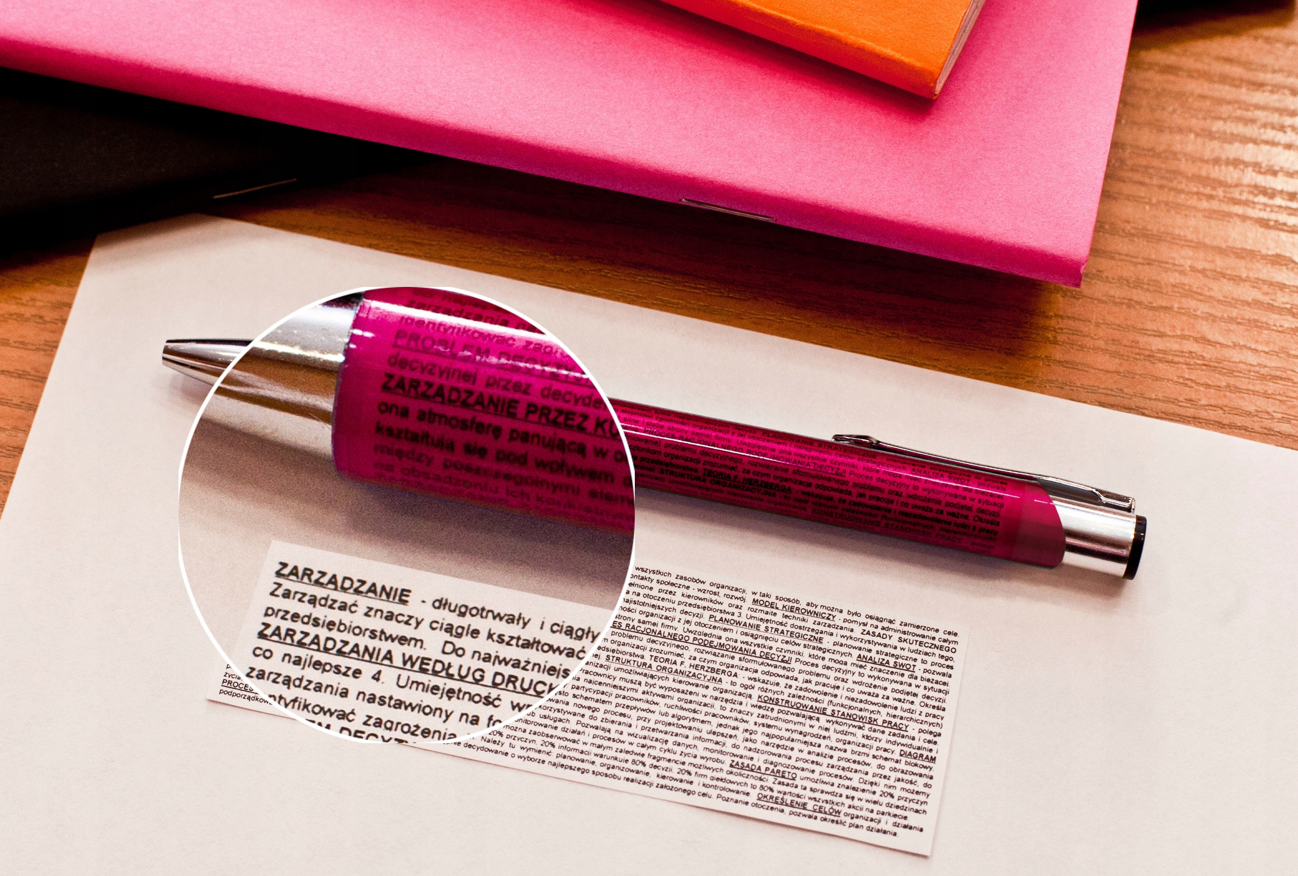Mając przy sobie 5 długopisów zmieścisz ponad 6 stron A4 standardowego tekstu pomniejszonego do 4px. OMG! :)