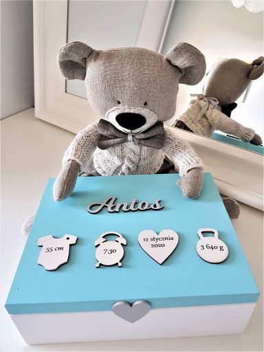 УВАГА! Якщо ви не виберете колір коробки, ми виготовимо коробку сіро-білого кольору з рожевим або блакитним акцентом в залежності від статі дитини.