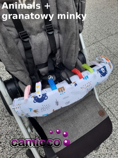 Підходить до більшості штанг (рейок), колясок і крісел, які пропонуються на польському ринку, з кольоровими етикетками, завдяки яким ваш малюк не буде нудьгувати.