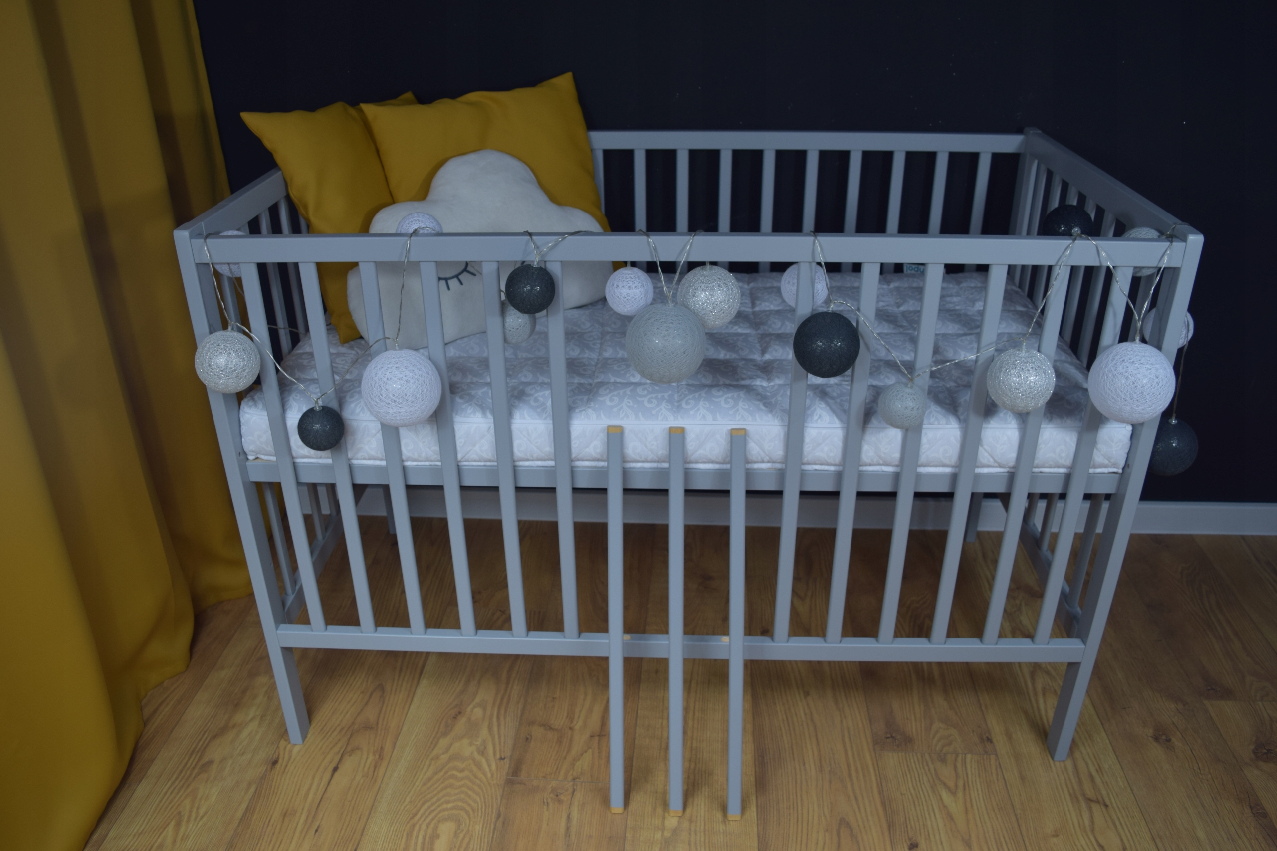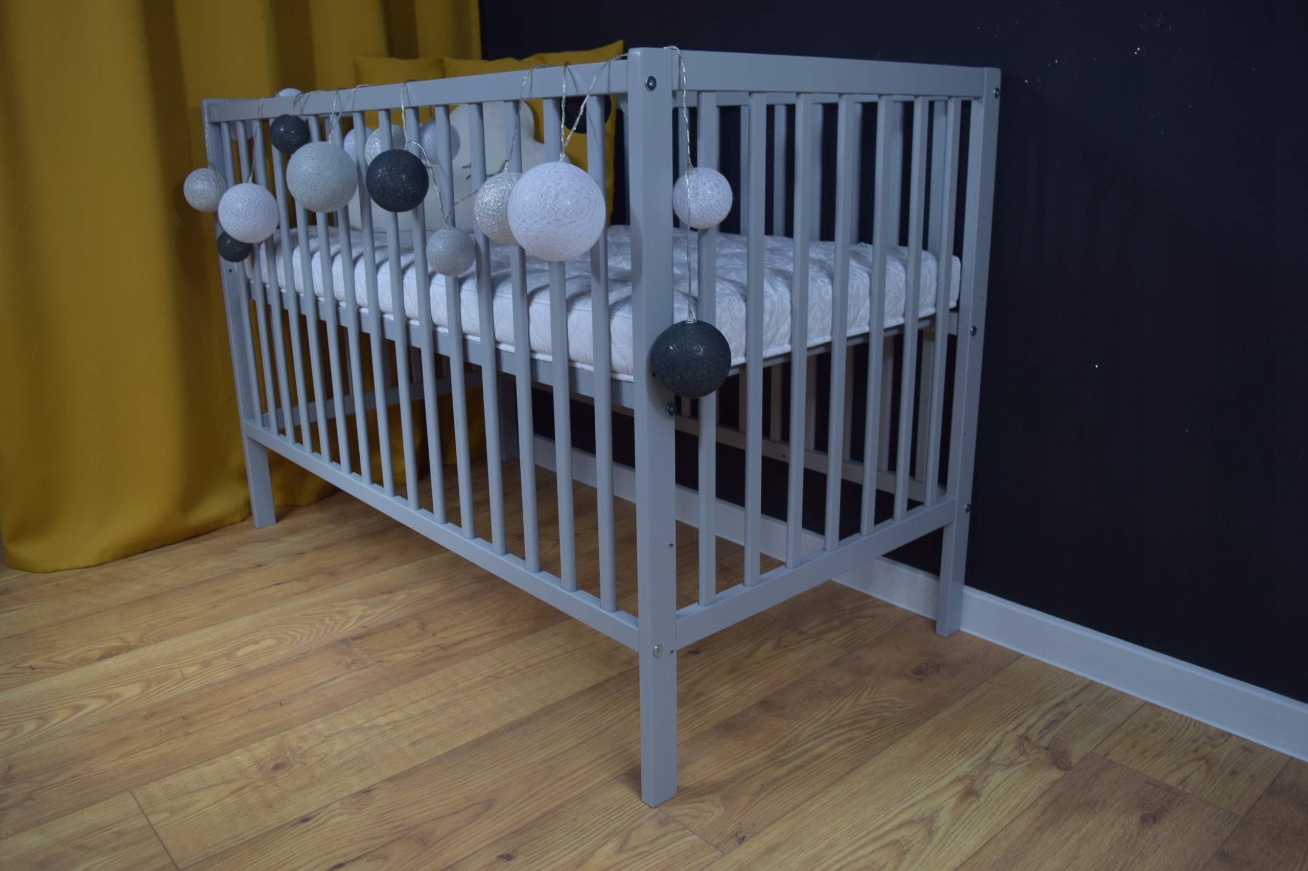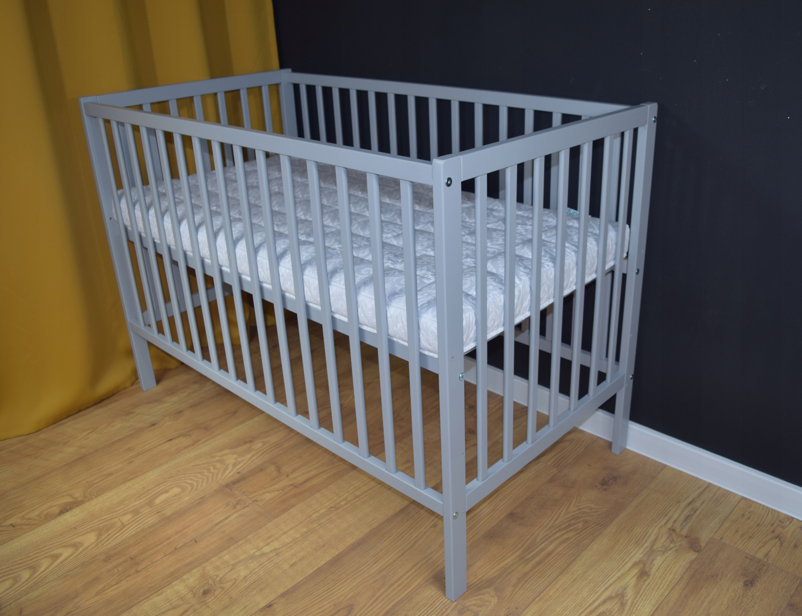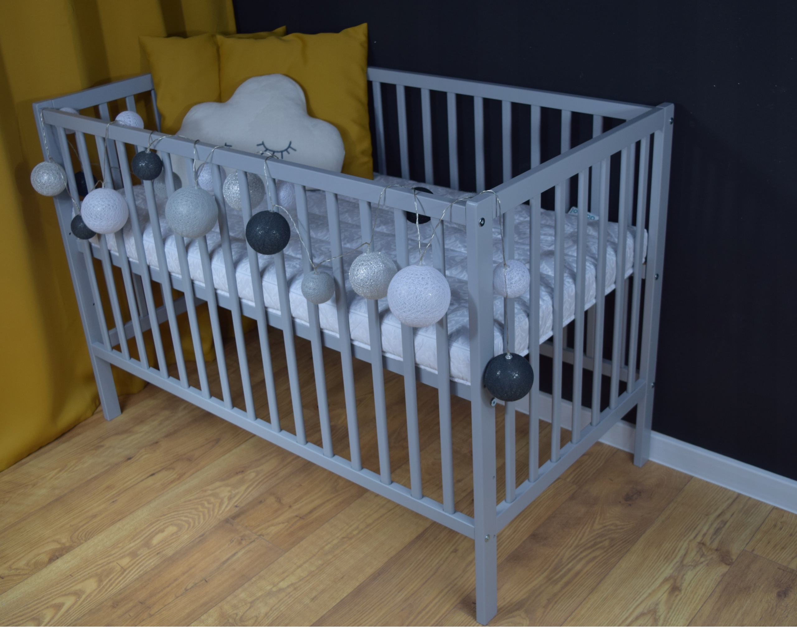 Łóżeczko magda szara b/sz + barierka
