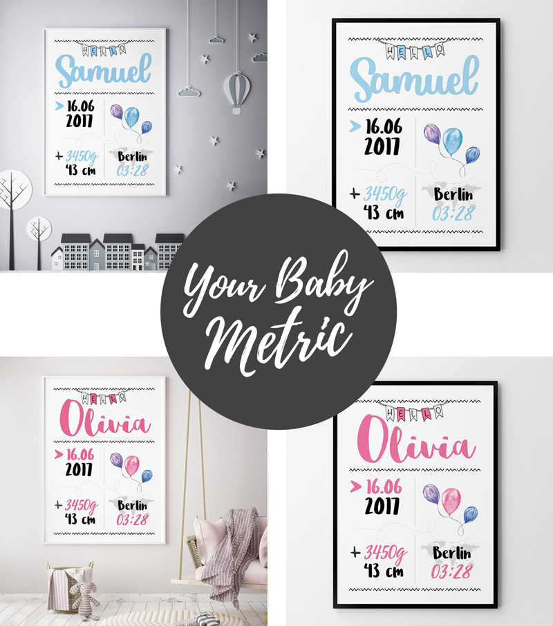 Indywidualny projekt z jego imieniem, datą i miejscem urodzenia. Wybierając wydruk u nas masz pewność pięknego wykonania, bo wszystkie nasze plakaty drukujemy na wyselekcjonowanym papierze o wysokiej gramaturze. Po zamówieniu skontaktujemy się z Tobą mailowo, żeby przygotować projekt dla Ciebie i Twojego maluszka.Po zakupie METRYCZKI podeślij nam wszystkie dane swojego malucha :) a my przygotujemy dla Ciebie projekt.
